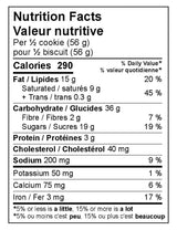 Flour, Butter, Sugar, Dark chocolate, Chocolate fudge cookies (Wheat flour, Sugar, Vegetable oil, Modified palm oil, Cocoa, Golden syrup, Wheat and/or cornstarch, Unsweetened chocolate, Baking soda, Salt, Soy lecithin, Natural flavour, Colour), Eggs, Organic vanilla xxtract, Salt, Baking powder, Baking soda, Chocolate injection (Sugar, Water, High maltose corn syrup, Palm oil, Cornstarch, Cocoa powder, Canola oil, Salt, Mono- and diglycerides, Polysorbate 60, Sodium stearoyl lactylate, Sodium acid pyrophosphate, Natural and artificial flavor, Citric acid, Potassium sorbate)