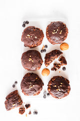 Flour, Peanut butter chips, Milk chocolate, Butter, Sugar, Peanuts, Eggs, Cocoa powder, Dark chocolate, Salt, Organic vanilla extract, Baking powder, Baking soda