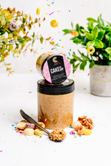 Cake My Day: A playful, nostalgic twist with a walnut butter base mixed with fruity froot loops, rainbow sprinkles, and creamy white chocolate. It’s a celebration in a jar, taking your taste buds to colossal heights with each spoonful.