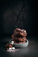 Ingredients: Flour, Butter, Milk chocolate, Sugar, Candy cane, Eggs, Organic Oats, Cacao Powder, Marshmallow, Organic vanilla extract, Organic sea salt, baking powder, baking soda